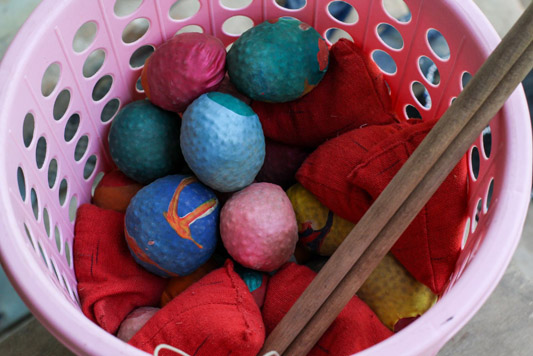 Jules demonstrates a new trick or a new prop then the boys try it out, helping each other along the way. They’ve been testing out the translations of diablo legend Donald Grant‘s book (thanks Donald). Later they spread out into the compound with the props, practising whatever they like and inventing their own routines.