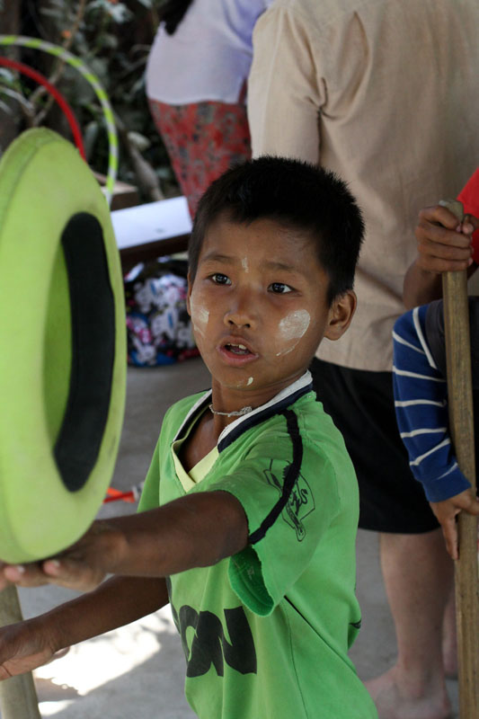 Serious Fun trainer Jules Howarth is teaching 25 boys in the circus team at Thanlyin Boys’ Training Centre, who he describes as the best young jugglers in Burma currently, full of humour and madcap energy. Many are in their second season with Jules and they’ve been working hard on their circus skills. When Jules returned in December, they turned out for the first workshop wearing their T-shirts from last year’s International Juggling Festival, proudly showing off the “everyone needs to have fun” logo and eager to show Jules what they’d been practising.